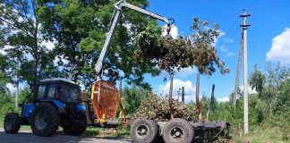 Фотофакт: ДРСУ-184 убирают поваленные деревья и ветки с обочины дорог
