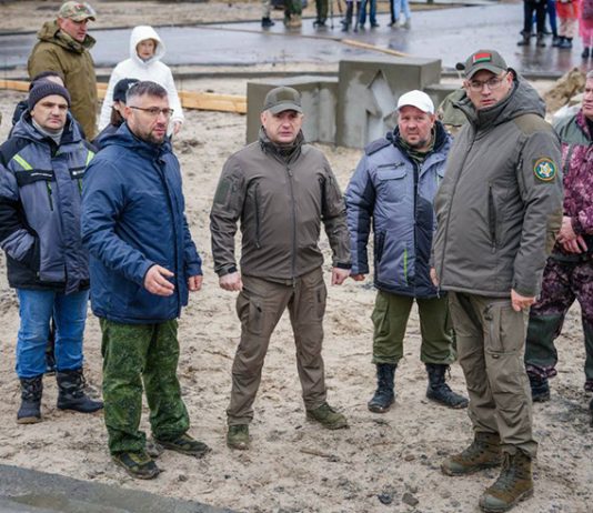 Председатель облисполкома Иван Крупко и его заместители укладывали тротуарную плитку