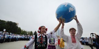 Сотни юных миротворцев собрались в центре Минска на линейку к Международному...